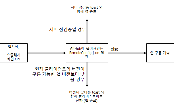 앱이 구동될때 해당 주소의 json을 요청해서 처리하고 있고, 서버가 갑자기 죽어버리는 경우 등에 GitHub에 올라와 있는 json내용을 고쳐서 RemoteConfig로 이용하고있습니다. (변경시 5분정도의 캐싱시간이 적용되더라구요..)