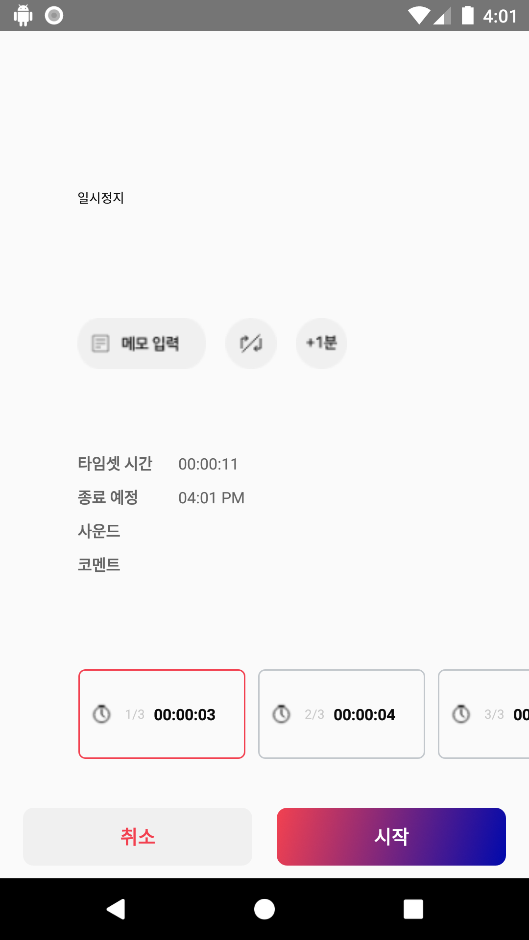 <androidx.constraintlayout.widget.ConstraintLayout xmlns:android="http://schemas.android.com/apk/res/android" xmlns:app="http://schemas.android.com/apk/res-auto" xmlns:tools="http://schemas.android.com/tools" android:layout_width="match_parent" android:layout_height="match_parent" tools:context=".proc.ProcActivity"> android:id="@+id/ivRepeatBtn" android:layout_width="40dp" android:layout_height="40dp" android:layout_marginStart="15dp" android:scaleType="fitXY" android:src="@drawable/btn_repeat" app:layout_constraintLeft_toRightOf="@id/ivWriteMemoBtn" app:layout_constraintRight_toLeftOf="@id/ivAddMinuteBtn" app:layout_constraintTop_toTopOf="@id/ivWriteMemoBtn" /> android:id="@+id/ivAddMinuteBtn" android:layout_width="40dp" android:layout_height="40dp" android:layout_marginStart="15dp" android:scaleType="fitXY" android:src="@drawable/button_1_ac" app:layout_constraintLeft_toRightOf="@id/ivRepeatBtn" app:layout_constraintRight_toLeftOf="@id/tvAddCount" app:layout_constraintTop_toTopOf="@id/ivWriteMemoBtn" /> android:id="@+id/tvAddCount" android:layout_width="wrap_content" android:layout_height="wrap_content" android:layout_marginStart="5dp" android:text="" android:textColor="#0a0a0a" android:textSize="12dp" app:layout_constraintBottom_toBottomOf="@id/ivAddMinuteBtn" app:layout_constraintLeft_toRightOf="@id/ivAddMinuteBtn" app:layout_constraintTop_toTopOf="@id/ivAddMinuteBtn" tools:text="x 3" /> android:id="@+id/tvTimesetTimeText" android:layout_width="wrap_content" android:layout_height="wrap_content" android:layout_marginTop="65dp" android:text="타임셋 시간" android:textColor="#646464" android:textSize="12dp" android:textStyle="bold" app:layout_constraintBottom_toTopOf="@id/tvEndTimeText" app:layout_constraintStart_toStartOf="@+id/tvTitle" app:layout_constraintTop_toBottomOf="@+id/ivWriteMemoBtn" /> android:id="@+id/tvTimesetTime" android:layout_width="wrap_content" android:layout_height="wrap_content" android:layout_marginLeft="20dp" android:textColor="#646464" android:textSize="12dp" app:layout_constraintLeft_toRightOf="@id/tvTimesetTimeText" app:layout_constraintTop_toTopOf="@id/tvTimesetTimeText" tools:text="00:01:00" /> android:id="@+id/tvEndTimeText" android:layout_width="wrap_content" android:layout_height="wrap_content" android:layout_marginTop="10dp" android:text="종료 예정" android:textColor="#646464" android:textSize="12dp" android:textStyle="bold" app:layout_constraintBottom_toTopOf="@id/tvSoundText" app:layout_constraintStart_toStartOf="@+id/tvTitle" app:layout_constraintTop_toBottomOf="@+id/tvTimesetTimeText" /> android:id="@+id/tvEndTime" android:layout_width="wrap_content" android:layout_height="wrap_content" android:textColor="#646464" android:textSize="12dp" app:layout_constraintLeft_toRightOf="@id/tvEndTimeText" app:layout_constraintStart_toStartOf="@+id/tvTimesetTime" app:layout_constraintTop_toTopOf="@id/tvEndTimeText" tools:text="9:42 AM" /> android:id="@+id/tvSoundText" android:layout_width="wrap_content" android:layout_height="wrap_content" android:layout_marginTop="10dp" android:text="사운드" android:textColor="#646464" android:textSize="12dp" android:textStyle="bold" app:layout_constraintBottom_toTopOf="@id/tvCommentText" app:layout_constraintStart_toStartOf="@+id/tvTitle" app:layout_constraintTop_toBottomOf="@+id/tvEndTimeText" /> android:id="@+id/tvSound" android:layout_width="wrap_content" android:layout_height="wrap_content" android:textColor="#646464" android:textSize="12dp" app:layout_constraintLeft_toRightOf="@id/tvSoundText" app:layout_constraintStart_toStartOf="@+id/tvTimesetTime" app:layout_constraintTop_toTopOf="@id/tvSoundText" tools:text="해당 타이머 사운드 노출" /> android:id="@+id/tvCommentText" android:layout_width="wrap_content" android:layout_height="wrap_content" android:layout_marginTop="10dp" android:text="코멘트" android:textColor="#646464" android:textSize="12dp" android:textStyle="bold" app:layout_constraintStart_toStartOf="@+id/tvTitle" app:layout_constraintTop_toBottomOf="@+id/tvSound" /> android:id="@+id/tvComment" android:layout_width="wrap_content" android:layout_height="wrap_content" android:textColor="#646464" android:textSize="12dp" app:layout_constraintLeft_toRightOf="@id/tvCommentText" app:layout_constraintStart_toStartOf="@+id/tvTimesetTime" app:layout_constraintTop_toTopOf="@id/tvCommentText" tools:text="해당 타이머 사운드 노출" /> android:id="@+id/btBottom1Btn" android:layout_width="0dp" android:layout_height="45dp" android:layout_marginStart="18dp" android:layout_marginEnd="19dp" android:layout_marginBottom="10dp" android:background="@drawable/bg_bottom_button_gray" android:gravity="center" android:scaleType="fitXY" android:text="취소" android:textColor="@color/se_specific_pink" android:textSize="15dp" android:textStyle="bold" app:layout_constraintBottom_toBottomOf="parent" app:layout_constraintEnd_toStartOf="@id/btBottom2Btn" app:layout_constraintHorizontal_chainStyle="spread" app:layout_constraintStart_toStartOf="parent" /> android:id="@+id/btBottom2Btn" android:layout_width="0dp" android:layout_height="45dp" android:layout_marginEnd="18dp" android:background="@drawable/bg_bottom_button_gray" android:gravity="center" android:scaleType="fitXY" android:text="일시정지" android:textColor="@color/se_specific_black" android:textSize="15dp" android:textStyle="bold" app:layout_constraintBottom_toBottomOf="@id/btBottom1Btn" app:layout_constraintEnd_toEndOf="parent" app:layout_constraintStart_toEndOf="@id/btBottom1Btn" /> <com.timer.proc.LeftSideSnappyHorizontalListView android:id="@+id/lsshlv" android:layout_width="match_parent" android:layout_height="wrap_content" android:layout_marginTop="73dp" app:layout_constraintEnd_toEndOf="parent" app:layout_constraintStart_toStartOf="parent" app:layout_constraintTop_toBottomOf="@id/tvCommentText" /> <androidx.constraintlayout.widget.ConstraintLayout android:id="@+id/clSkipMessage" android:layout_width="200dp" android:layout_height="61dp" android:layout