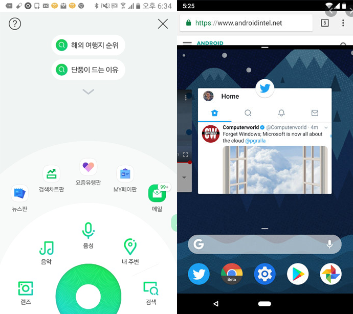5. 상단부 서치 에딧박스출력, 검색으로 실행 앱 추천, 웹검색, 플러그인앱 연동 가능