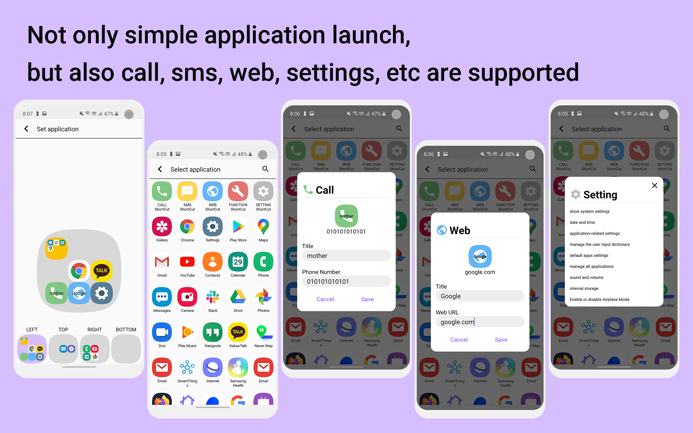 Previously, to run the app, you had to go through the following process and touch several times in progress. 1. Press the Home button 2. Open the drawer 3. Swipe left and right to find the app you want to run 4. Touch the app to run Quickly is different. Y