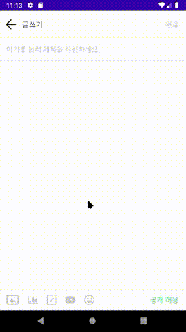 사이드 프로젝트 시나리오 중 게시글 작성 기능으로 단순 글작성 뿐만 아니라 사진, 투표, 체크리스트, 유튜브 등을 포함 시킬 수 있는 페이지가 필요해서 구현하였고 데이터바인딩의 숙지를 위해 데이터바인딩 MVVM을 함께 적용하여 구현하였다.