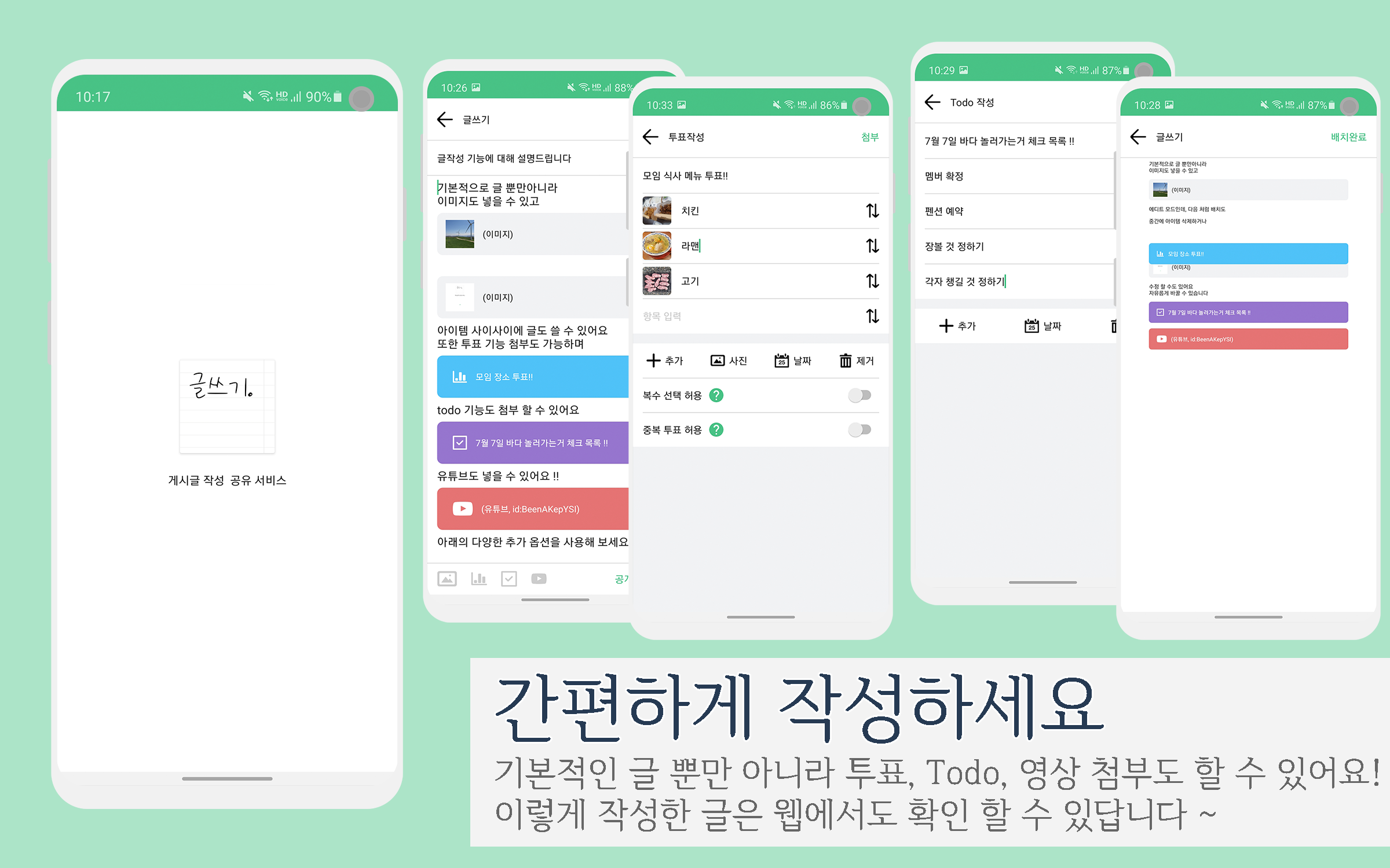 개발일지 [글쓰기] 앱 소개 seoft 2020. 6. 8. 21:00 [글쓰기 in PlayStore] https://play.google.com/store/apps/details?id=kr.co.seoft.sf 게시판 작성/공유 플랫폼 : 글쓰기 - Google Play 앱 모임에서 투표할 공간이 없다구요?? 공통된 관심사에서 정보를 공유하고 싶으세요?? 간단한 홍보글을 써서 홍보가 필요한가요?? 글쓰기 플랫폼에서 간편하게 작성하고 공유하고 의견을 나눠보�� play.google.com [글쓰기 소개] http://post.seoft.co.kr/ 저작자표시 (새창열림)