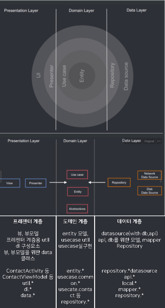 클린아키택쳐 관련해서 많이 보던 다음 이미지가 있었고 추가적으로 다른 블로그에서 봤었던 이미지인데 비교적 이해가 쉽게 구성된 것 같아 공유드립니다. (youngest-programming.tistory.com/484)
