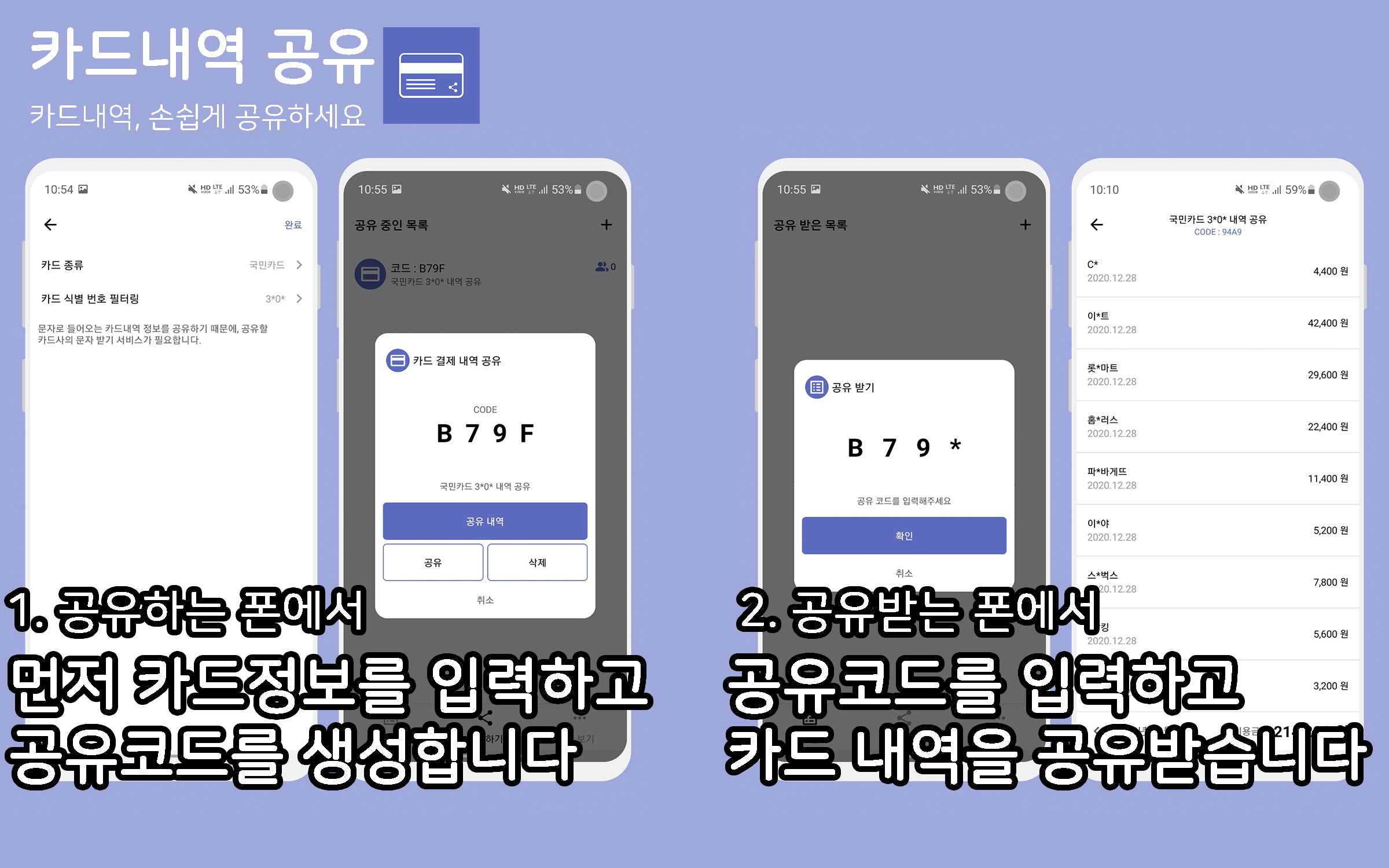 카드 내역 공유 : 카드 내역, 손쉽게 공유하세요